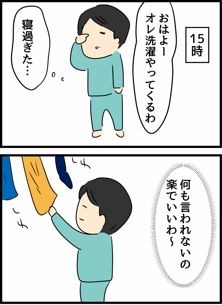 倦怠期の夫婦が大切なことに気づいた話15夫サイド 2021年10月02日 ①はこちら前回の15妻サイドはこちら16妻サイドはこちら※エピソードを妻サイド、夫サイド交互に描いていきます他おすすめ漫画オペ室で働いていた頃のお話 合コンで地獄だった話 不倫され慰謝料◯◯◯万円ゲットした話 【他サイト連載】看護師の恋愛話束縛彼氏がストーカーにクラスチェンジした話(後編) 前編はこちら 【倦怠期の夫婦が大切なことに気づいた話】①妻/夫②妻/夫③妻/夫④妻/夫⑤妻/夫⑥妻/夫⑦妻/夫⑧妻/夫⑨妻/夫10妻/夫11妻/夫12妻/夫13妻/夫14妻/夫15妻人間まおのライン公式アカウントが始まりました!登録していただくとブログをアップした際にLINEに通知がいくのでワンクリックですぐ読めます🥳あと公式アカウント限定でイラストも時々アップしていく予定です✨よかったら登録お願いします送料無料 レディース ラテックス フルカップ 脇高 美胸 谷間UP 楽ブラ つけ心地 女性 大きい 綺麗 揺れない 痩せ見え 垂れ胸 おやすみ 20代30代40代 単品 ナイトブラ 大きい胸 新作 夏[スリーピングシープ] ひざたけ ワンピ ワンピース 膝丈 フレンチスリーブ 半袖 夏 リゾート 黒 ゆったり ベーシック セットアップ ベルト シフォン ショート xl 女 ライン カットソー 襟 シンプル 綿 流行り 茶色 大きい アウター タートルネック ボヘミアン 今期 パフスリーブ 柄 丸首 カシュクール カシュクールワンピース Vネック 大人 きれいめ 綺麗 BK-XLSleeping Sheep(スリーピング シープ)≪7/28(火)10:00 チャンスは24h!!送料無料1590円♪≫ ワンピース ロングワンピース レディース 選べる2タイプ!ウエストブラウジングカットワンピース レディース ワンピース ロング丈 ノースリーブ フレンチ [E2028] 夏 半袖 マキシ丈 ワンピ【送料無料】 スイーツ 中元 ギフト 10分間で2000本完売!幻のチーズケーキ(長方形)約2〜3名用【冷凍便】【あす楽対応】贈り物 お菓子 お取り寄せグルメ 高級 ブランド お洒落 美味しい ブランド スイーツ 2021 定番 有名パティシエ【スフレチーズケーキ ホールケーキ 洋菓子工房Ub】 敬老の日 敬老の日ギフト 送料無料 送料込 誕生日ケーキ バースデーケーキ お返し スイーツ 内祝 誕生日 無添加 無着色 人気 甘さ控えめ 冷凍 お取り寄せ 残暑見舞い 残暑お見舞い 「恋愛エピソード」カテゴリの最新記事 タグ :#みんなの体験談 < 前の記事次の記事 > コメント コメント一覧 (144) 前のコメントを読み込むためにはJavaScriptを有効にしてください。 読み込み中 136. わかる 2021年10月03日 08:18 >>64 私もそうなると思う。子供が出来ても自分は子供のままのパパさんの話ママ友から割と聞くよー。 子連れで出掛けてもスマホゲームやり続けてるとかもよく見る光景。エスオはそうなりそう。 0 人間まお がしました 138. んねー 2021年10月03日 09:37 >>136 それこそ子供一気に二人育てるようなもん 大変すぎて諦めたわ… 0 人間まお がしました 23. ももにゃん 2021年10月02日 13:34 エスオさん、15時起き。 かなりお疲れなようで、体、大丈夫なのでしょうか? 洗濯もの、生乾き臭と、雨が降ってやり直しの予感。 睡眠リズムくずして、日曜日の朝の洗濯も遅くなる予感。 日曜日の夜に取り込めず、月曜日の朝に取り込むの忘れる予感。 アイロンがけ、するのかな?できるのかな?しなくてもいい感じなのかな? 話の展開として、雨が降ってきて、エムコさんがエスオさんの洗濯物を放置で、ケンカになりそうな? 0 人間まお がしました 76. 名無し 2021年10月02日 16:50 >>23 15:00過ぎての起床はアルコールのせいでもあるけど疲労は相当溜まってますよね これが酷いと夕方→夜→次の日の深夜→次の日の朝→次の日の昼となっていきます(経験談より) 0 人間まお がしました 108. ふむふむ 2021年10月02日 22:08 >>76 大変だったんですね。 でもその状態だとして一刻も早く寝たい!!ってなりません? 私は独身の時ブラックで働いて午前帰りとか毎日でしたが、お酒なんか飲む余裕無かったです。 一刻も一刻も早く寝たいでしかなかったです。 また午前3時とかに帰っても、次の日夜まで寝てしまう事も無かったです。 0 人間まお がしました 129. 76です 2021年10月03日 05:11 >>108 自分はお酒は飲めないのですぐに寝てました。それでも休日は一日中寝ないと疲れ取れなかったです。 そもそも平日は寝る→起きると仕事に行く という現実から逃げるために寝ないでゲームとかしてたので平日(月〜土)は睡眠1時間程度、土夜〜月朝までに寝るという生活でしたね 0 人間まお がしました 24. あ 2021年10月02日 13:35 15時から洗濯して乾くはずないよね。 もし自分が妻で昨日の洗濯物干したまま自分が見つけたらキレそう。 乾燥機買え。 0 人間まお がしました 25. うへぇ、 2021年10月02日 13:36 ほんとだらしない男や〜 さすがにここまでだと見てて不快だなぁ 他人ならいいけど旦那でしょ? そりゃ文句いわれても仕方ない 0 人間まお がしました 118. 2021年10月02日 23:29 >>25 釣れてますか? 0 人間まお がしました 139. 25 2021年10月03日 09:38 >