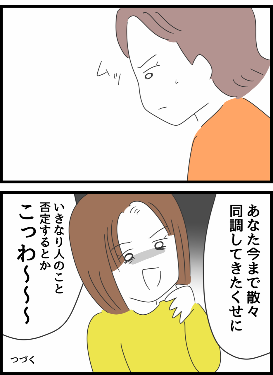 何考えてるの、山田さん!52 2022年02月02日 1はこちら 前回の つづき ↓おすすめ漫画↓登録していただくとブログをアップした際にLINEに通知がいくのでワンクリックですぐ読めます🥳楽天Room開設しました✨買ってよかった物やリピートしている食べ物を紹介しているよよかったらのぞいてってね 「何考えてるの、山田さん!」カテゴリの最新記事 タグ :#山田さん < 前の記事次の記事 > コメント コメント一覧 (89) 1. なや 2022年02月02日 12:07 鈴木は何があっても自分が正しい、自分が被害者、自分は偉いって考えなんだろうなー この会社でしか威張れないクソザコにしか見えないや 自分の言う通りに物事動かなくて腹立つならもう独立してくれ… 0 人間まお がしました 2. えーん 2022年02月02日 12:08 鈴木は明らかに動揺してるけど、だからって高橋が鈴木を落とすことは無理っぽいな。 次回、山田さんの目が光る! 0 人間まお がしました 3. 結局は漫画 2022年02月02日 12:09 ボスになる人ってどこまでも腐ってるし、周りも怖くて結局言いなりになって気がつくと、反抗した奴は会社に居られなくなるのが現実~、 漫画はそんな事なさそうだけど。 0 人間まお がしました 31. ボス? 2022年02月02日 12:51 >>3 ガキ大将的な? 本当の意味でのボス=上司としては会社から選ばれないよね。 そんなの会社自体、終わってる。 官公庁の場合は知らんけど。 0 人間まお がしました 34. みるる 2022年02月02日 12:59 >>31 官公庁の偉い人=上級○○ですもん! 0 人間まお がしました 4. そういうのいいんで 2022年02月02日 12:10 高橋さんが言ったことに対してどう思うかおっしゃってww 0 人間まお がしました 24. 。 2022年02月02日 12:25 >>4 それなオブザイヤー 0 人間まお がしました 5. いやいや 2022年02月02日 12:10 あんたが一番怖いよ。 0 人間まお がしました 29. みるる 2022年02月02日 12:48 >>5 猿山のボスザルですので 汗 0 人間まお がしました 6. じゅん 2022年02月02日 12:11 まぁそうなるわな。鈴木がどんな人間なのかは別にして、高橋は今までの中途半端な行動に対しての責任を取る必要がある訳だ。ここは高橋が会社を退社すべきかな? 0 人間まお がしました 7. 高橋のライフは0 2022年02月02日 12:12 謎の人格否定しかできなくなってる。 0 人間まお がしました 49. ほんそれ 2022年02月02日 15:46 >>7 言い返すにしても、そうじゃなくない? でしかない。 0 人間まお がしました 8. ほんま 2022年02月02日 12:12 ガキやな 0 人間まお がしました 9. 早く終わらせて仕事しろ 2022年02月02日 12:12 あんまり進展のない会話をする3人、本音を言いつつ探り合い状態。 0 人間まお がしました 11. それが 2022年02月02日 12:13 >>9 女ってもんだ 0 人間まお がしました 10. 名無し 2022年02月02日 12:13 どう転んでもこの職場は空気最悪・仕事にも悪い影響しかないな 全員が部署バラバラにするしかないな 0 人間まお がしました 12. まぁ 2022年02月02日 12:14 鈴木さんからしたらいきなりだわな ご報告遅れました。腰巾着卒業致します。m(_ _)m って言ってあげなきゃびっくりしちゃうよ🥺 0 人間まお がしました 44. 草 2022年02月02日 14:18 >>12 たしかにww 0 人間まお がしました 13. まわり 2022年02月02日 12:14 傍から見てる人達こそが退職したくなるケンカだな。 0 人間まお がしました 14. もん 2022年02月02日 12:14 鈴木はここまで言われて、こんな反応返してどーするんだろ?一緒に言い返してくれる仲間いると思ってるんかな。 0 人間まお がしました 79. 砂糖が 2022年02月02日 23:33 >>14 言い返してくれるよ(笑) 0 人間まお がしました 15. あかり 2022年02月02日 12:18 録音するなり証言や日記、何かしらの証拠を残して上司や本部、SNSに拡散するくらいじゃないとだめだと思う 0 人間まお がしました 16. 鈴木の反論さぁ 2022年02月02日 12:19 「コントロールさせるのよくないと思います」て言ってんのに「同調してきたくせに否定するのこっわー」て、話理解できてる? 会話すら出来てないじゃん頭悪すぎてこっわー 0 人間まお がしました 20. まも 2022年02月02日 12:23 >>16 もとより会話する気なさそう 図星だしいきなり手のひら返して反抗してきたからそれしか言えんのやろ 0 人間まお がしました 30. それが 2022年02月02日 12:50 >>16 頭の回転が悪い人が口論に勝つ常套手段だからだよ。人の話はまともに聞かずその自分の主張を前面に出して、それを押し倒す。相手のペースに乗ったら負け。 0 人間まお がしました 82. そもそも 2022年02月03日 02:05 >>16 高橋ごときに説教されるのは無いわーとしか思ってないよ笑 てか、鈴木に反省と言う言語は理解の範疇に無いよね。 0 人間まお がしました 17. まるお 2022年02月02日 12:19 確かにそれもそうなんだけど、そもそも鈴木さんがいなければ2人も森さんもああはならなかったから、ある意味みんな鈴木さんに振り回されたってことでもあるよね…。 0 人間まお がしました 18. 2022年02月02日 12:19 鈴木さんがどうのこうのじゃなくて 人陥れたりする人の取り巻きやってるの情けなくなったんで仕事以外で関わるのやめましょうって言