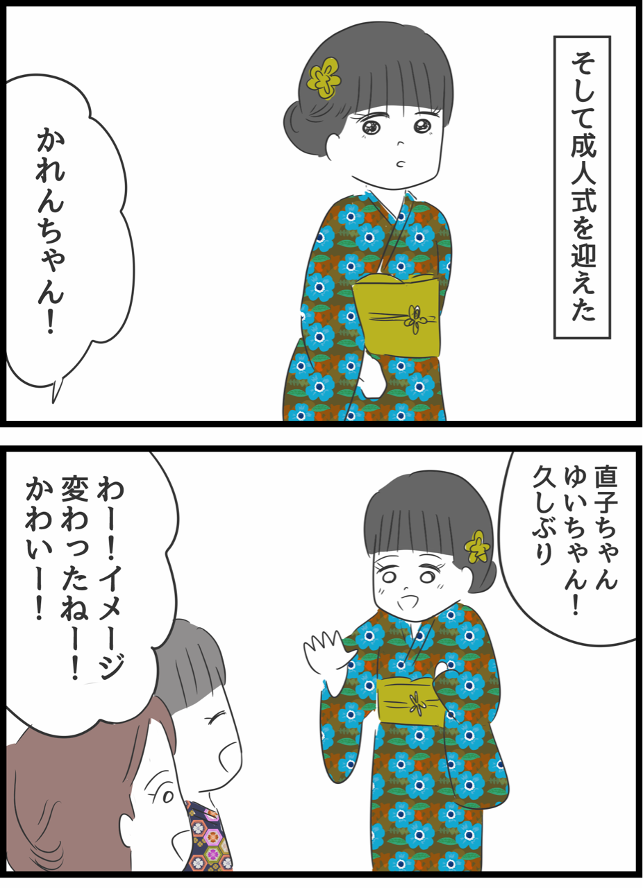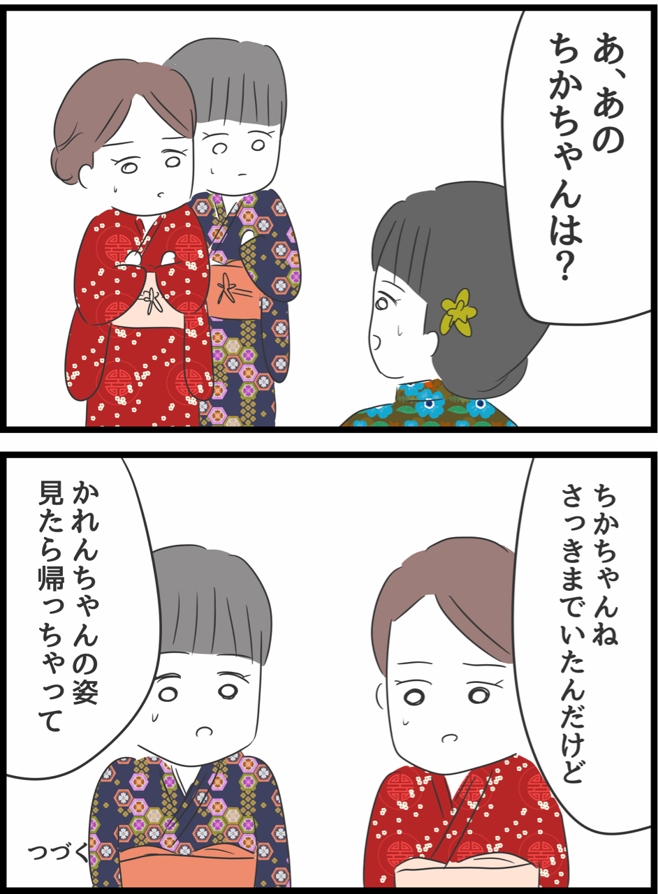 成人式で……ちかちゃんは めっちゃ可愛くなったかれんちゃんを見て逃げたな…