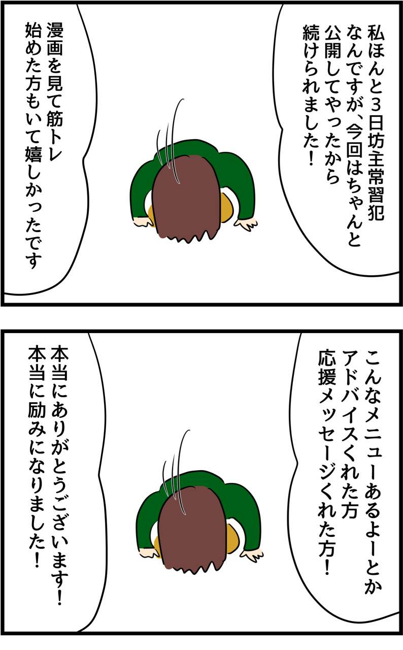 私も腹筋を割ろうと試みても1日坊主で続いた試しがないので、まおさんをきっかけにまおさんに習ってTwitterに挙げる習慣をつけて頑張ってます…!